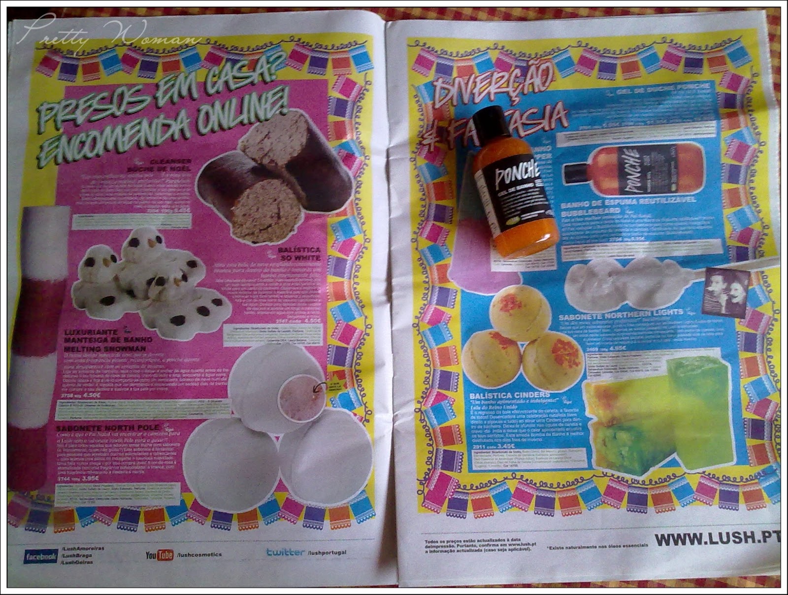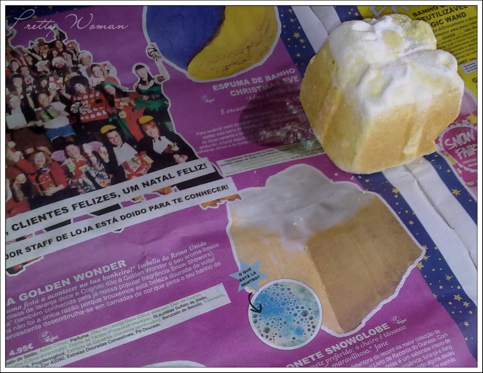 Junto com as coisinhas vinha um jornal com algumas noticias dos produtos e equipa Lush.